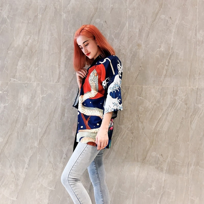 "¡Este kimono es tu aliado para expresar tu personalidad única y divertida! Con su diseño de kimono clásico, te hará sentir como una verdadera modelo. ¡Combínalo con cualquier atuendo y siempre destacarás!"